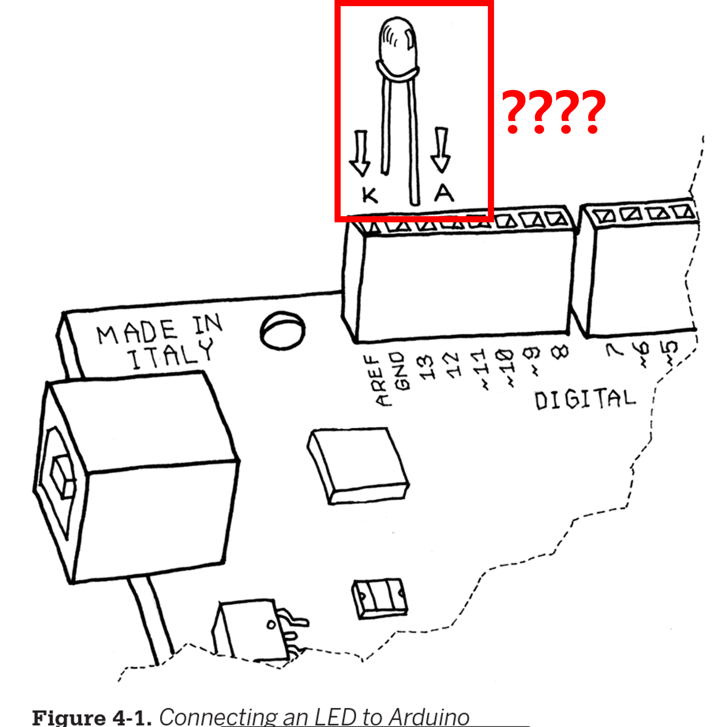 - 여담으로 저도 이 글을 쓰면서 알게된 사실인데 아두이노의 아버지라고 불리는 이탈리아의 마시모 반지(Massimo Banzi)교수의 저서 Make : Getting started with Arduino에 삽입된 일러스트에서도 LED를 직결하려는 듯한 그림이 있어 잘못된 관념을 심어줬을 수 있다고 합니다. 초심자가 따라했다가 LED좀 날려먹었을 수 있을 것 같습니다.