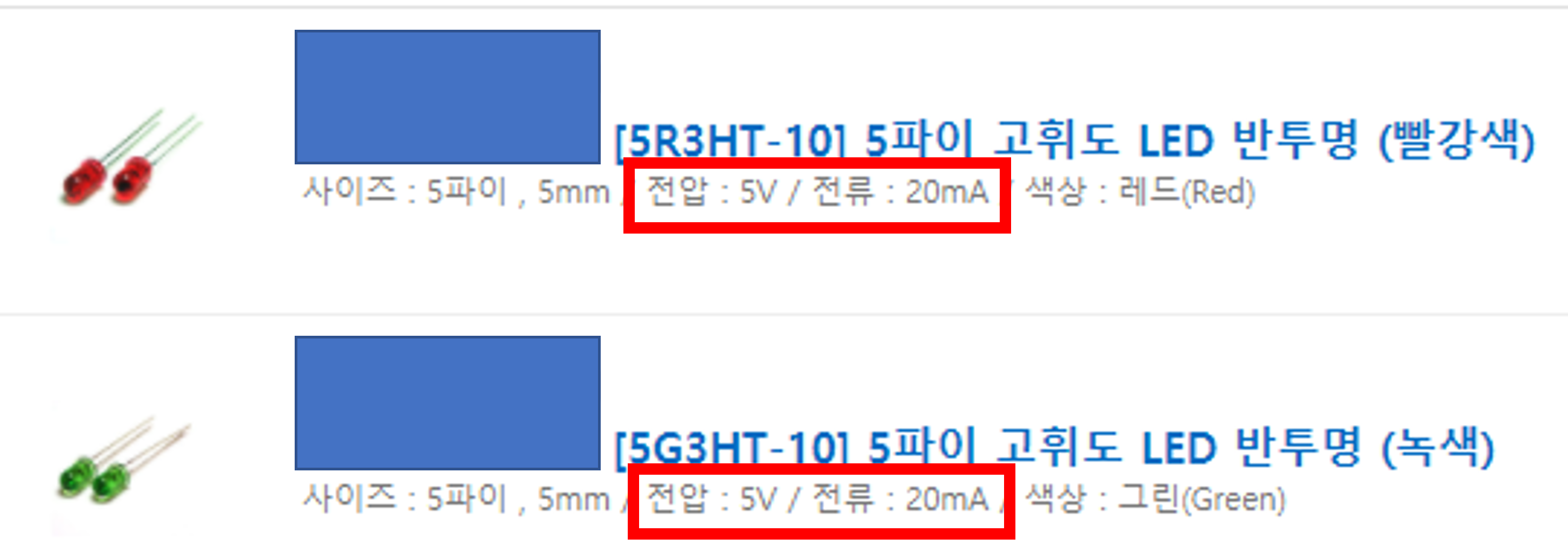 - LED의 특성상 전류를 무한히 흘려 보내려다 한계값 이상이 되면 망가진다고 했습니다. 그럼 5V, 20mA를 권장 허용치로 내세운 LED에 5V 40mA를 흘려 보내려고 한다면 당연히 LED가 망가지겠지요.