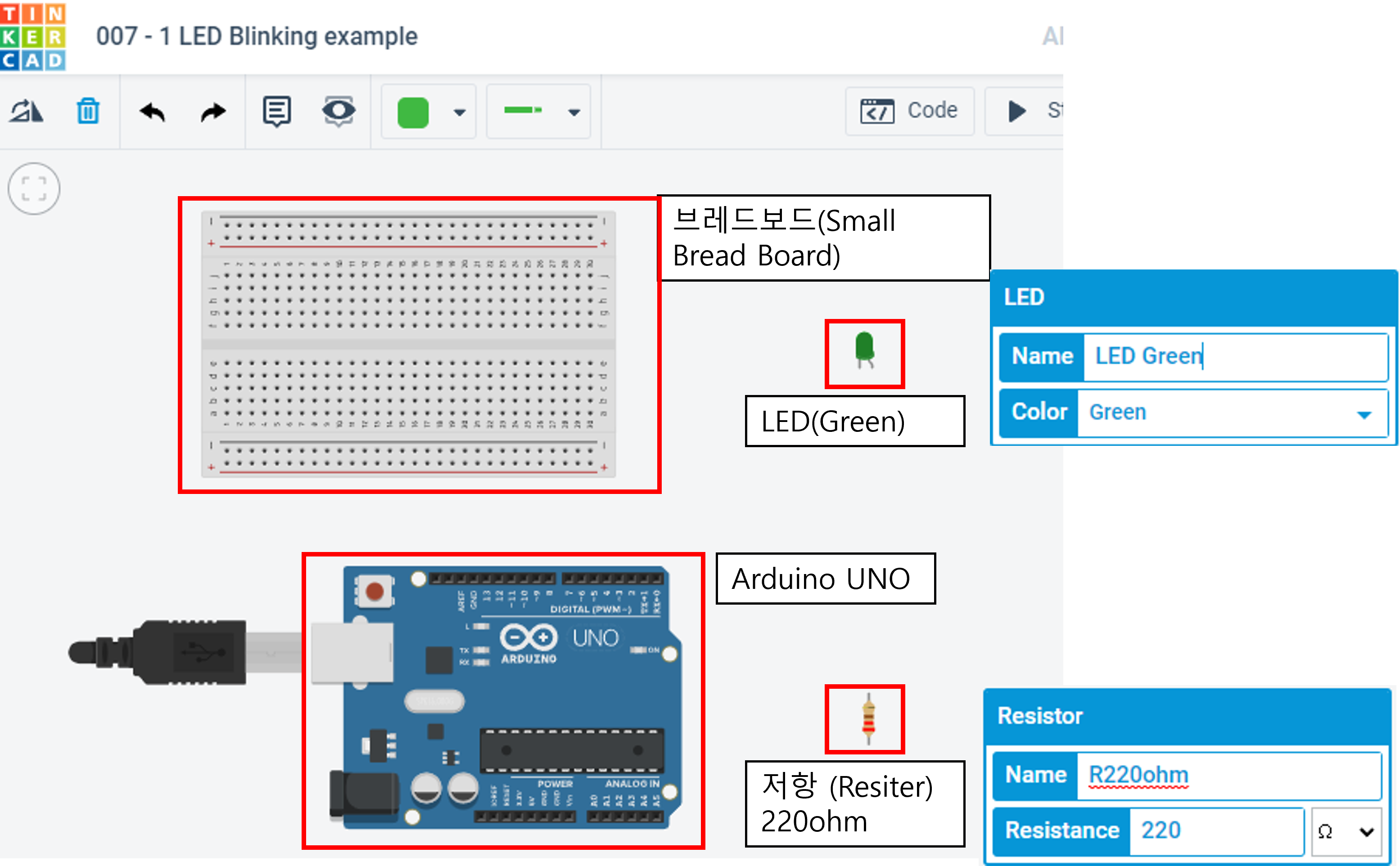 이번 포스트에서는 아두이노를 이용해서 1개의 LED를 켜고 끄는 예제를 틴커캐드(Tinkercad) 서킷으로 시뮬레이션 해보려고 합니다.