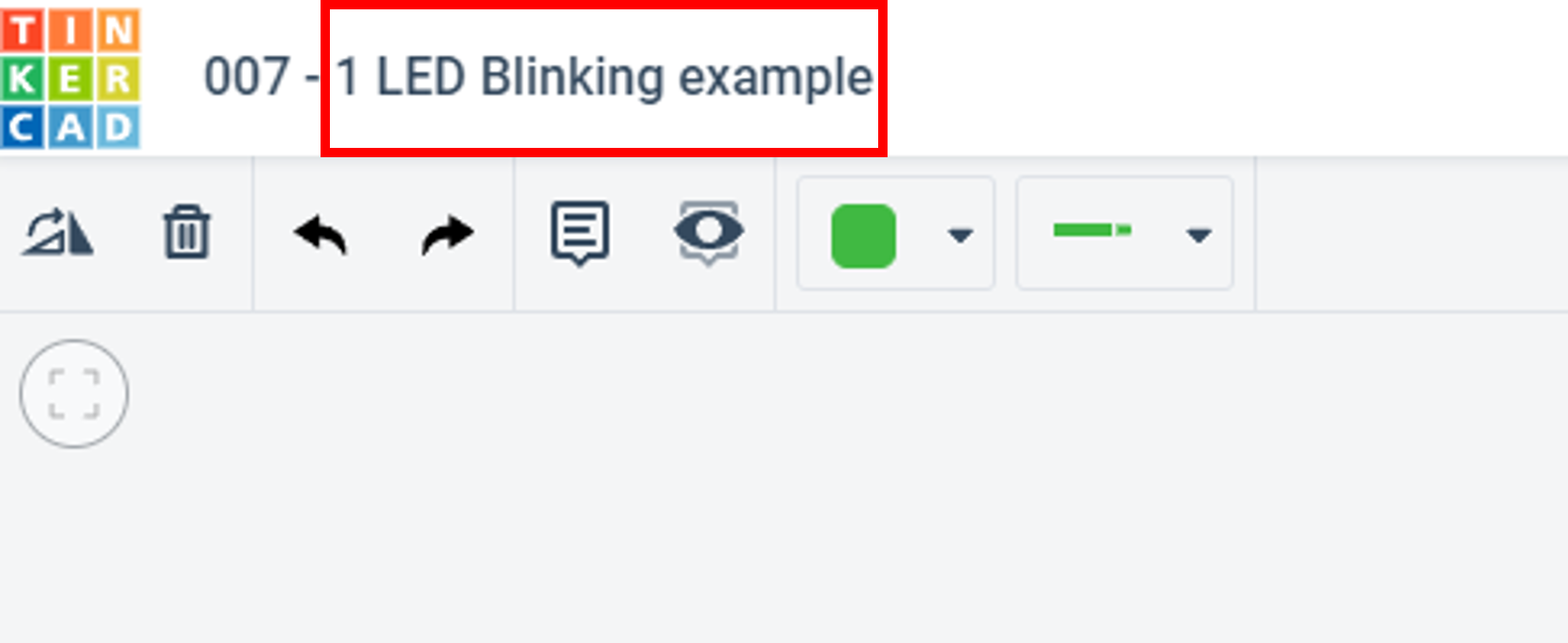 - 우선 서킷에서 ‘새 회로 작성’을 눌러 새로운 회로판을 생성해주고 이름을 구분하기 좋게 변경합니다. 편의상 ‘1 LED Blinking example’ 로 지정했습니다.