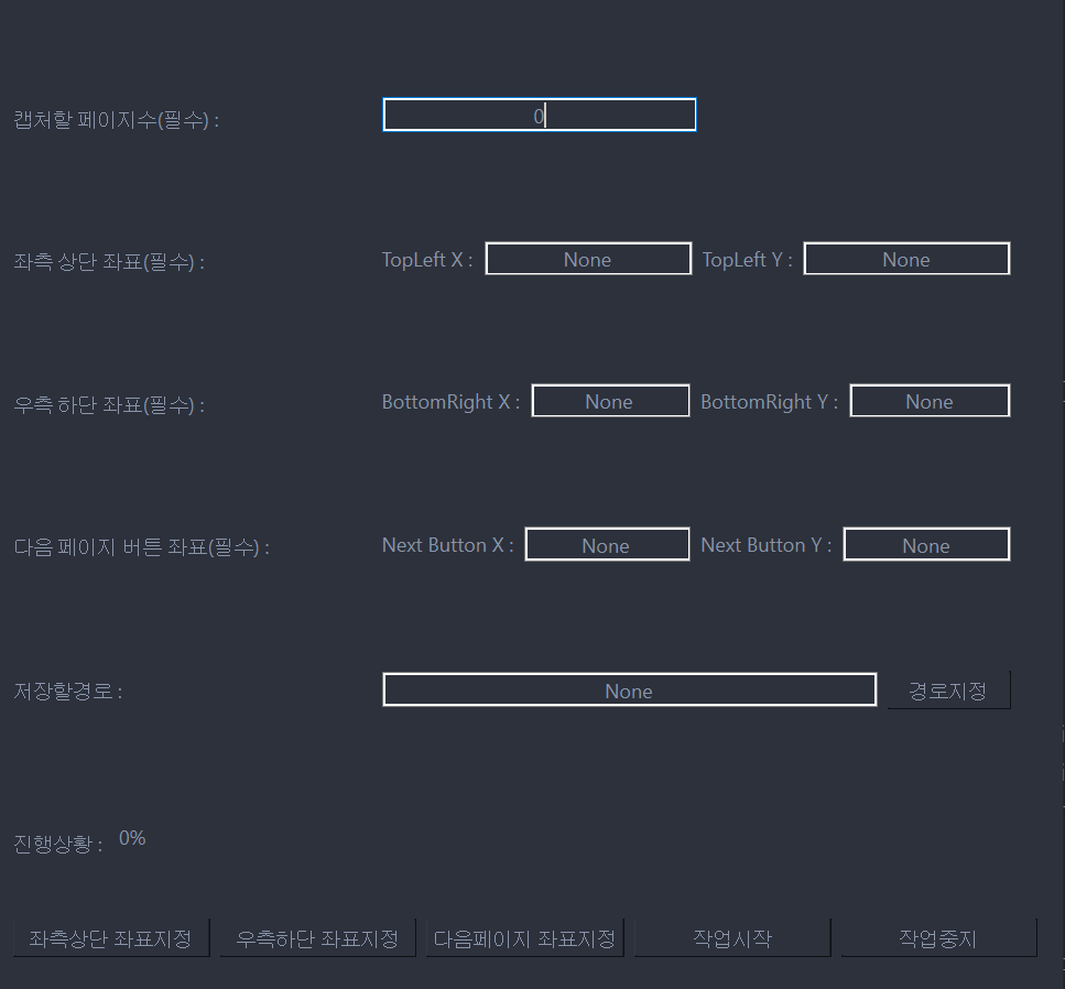 PySide6로 UI를 구성하고 파이썬으로 기능을 구성한 자동캡처 프로그램이다.