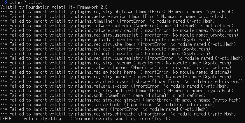 기본적으로 요즘엔 python3.X가 대세이지만 volatility는 2.X 버전이 대세이다. 그래서 python2.X 를 이용하여 실행해야하는데 설치하면 아래와 같은 에러가 난다. 이런 문제를 해결하기 위해서는 https://lonelyengineer.tistory.com/2078 python2.7용 pip 설치하기 기본적으로 최근의 리눅스는 python3이 우선인듯 하다. $ pip -V 를 해보면 3.x 버전이 나올 것이고 volatility 같은 python2.X 를 더 지원하는 녀석들을 위한 설치를 할때 필요한 패키지를 설치하는데 애를 lonelyengineer.tistory.com 요걸 먼저하고 나면 pip가 2.X 로 바뀌는데 칼리는 pip2가 생성된다. 그후에 $ sudo apt-get i..